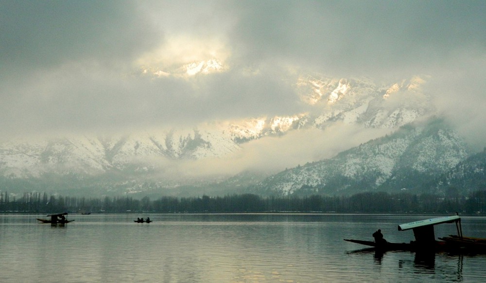 The Dal Lake towards the end of the season of frost, when the snows begin to melt and Srinagar readies for tourists.