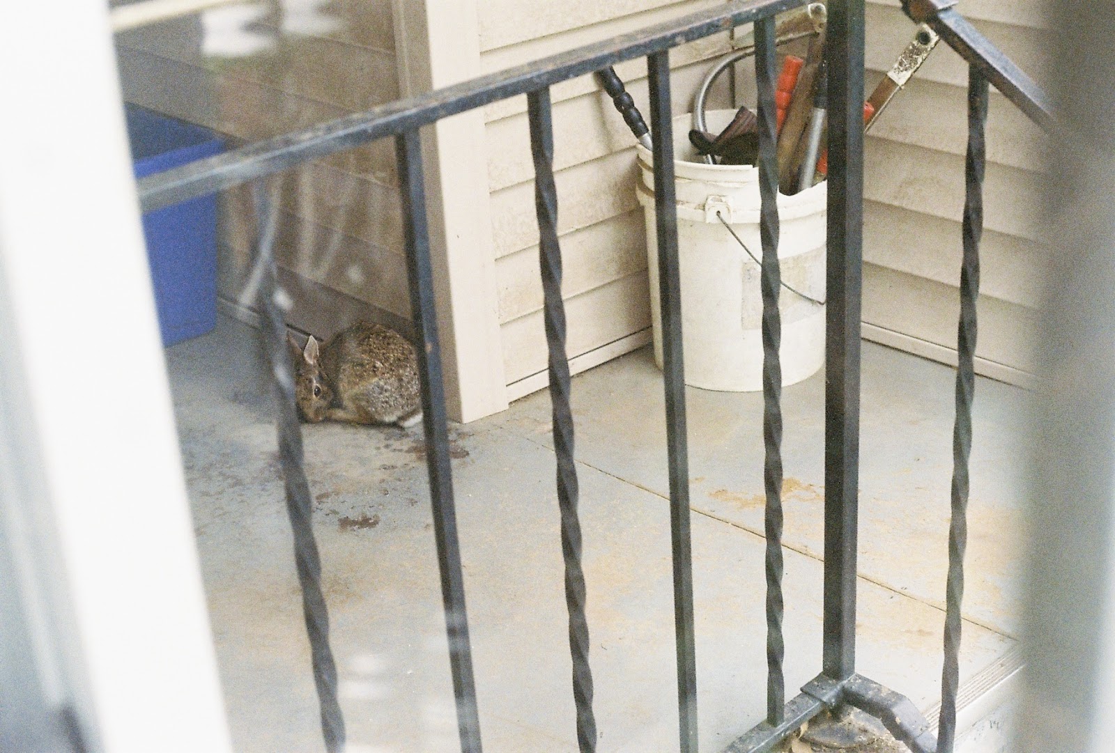 Is this rabbit looking for someplace to eat or someplace to hide?