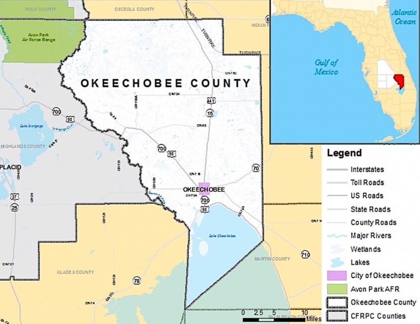 Okeechobee County, in the Heartland Region of Florida (Okeechobee County Location Map, Central Florida Regional Planning Council).