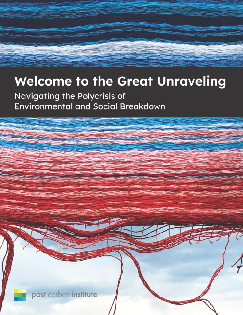 The cover of Post Carbon Institute’s recent report, Welcome to the Great Unravelling: Navigating the Polycrisis of Environmental and Social Breakdown.