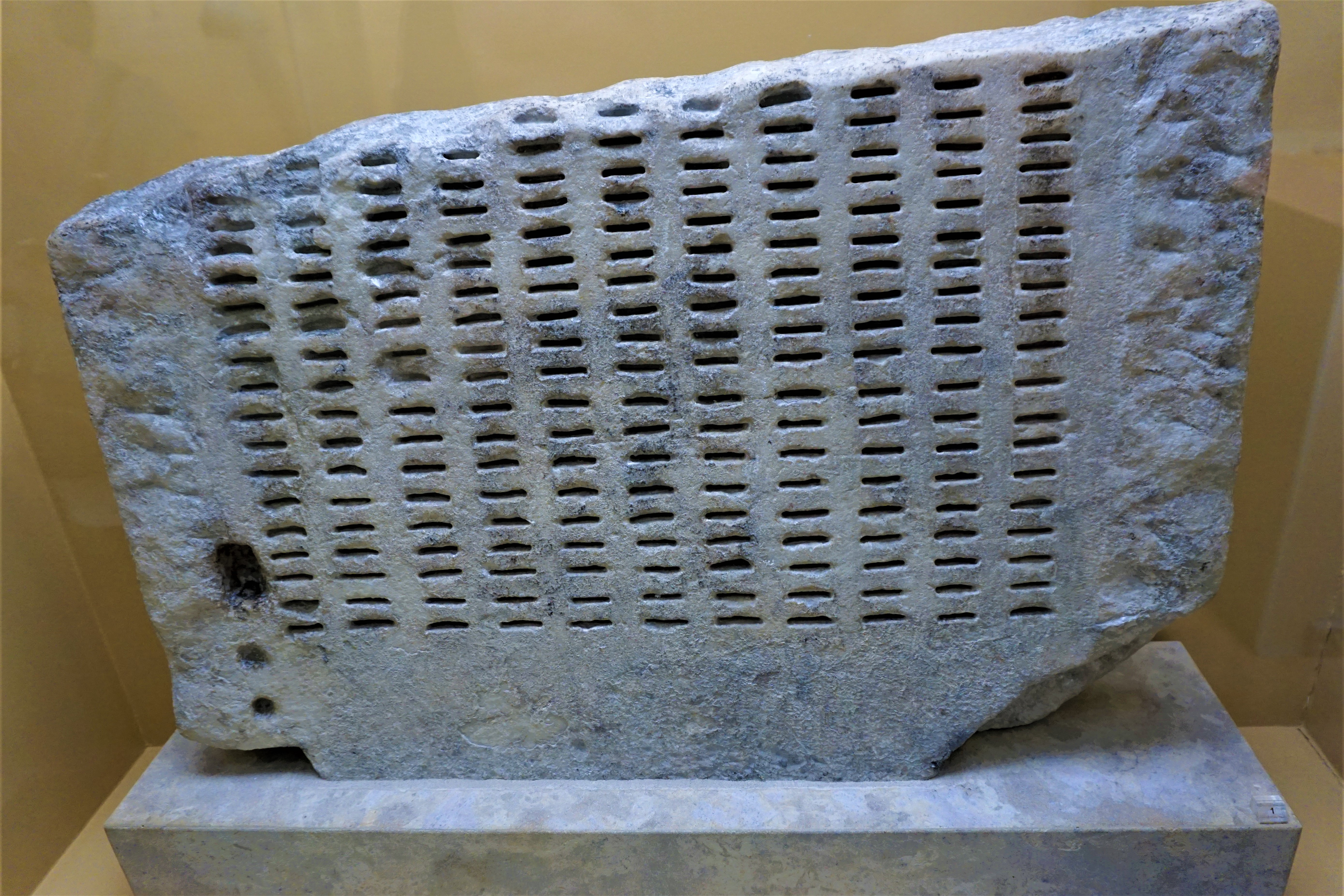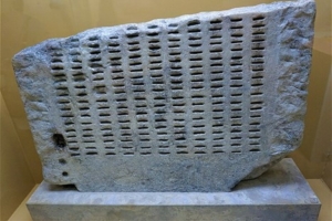 A kleroterion, used for random selection of officials and jurors in Athens (Museum of the Ancient Agora, Wikimedia)