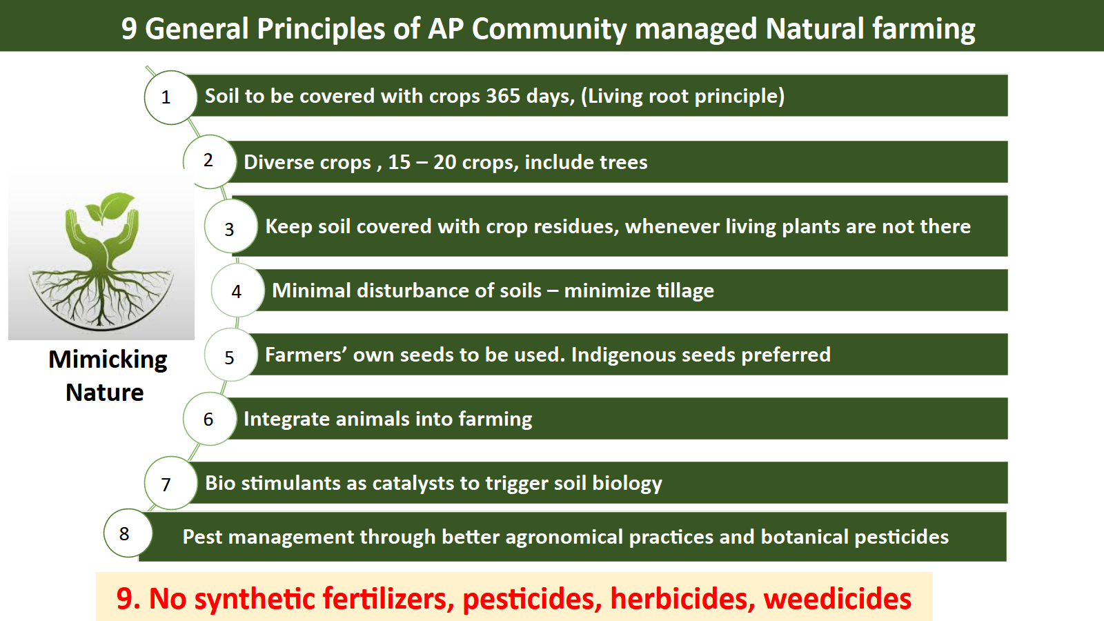 9 principles of Andhra Pradesh Community-Managed Natural Farming. Graphic: Vijay Kumar Thallam, RySS