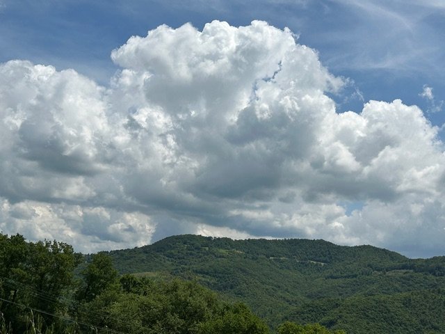 My neighbors and the neighboring village are a major support in my life. We are all farmers and I might refer to them as my community. But there is another definition of community (from The Oxford English Dictionary): a group of animals or plants in the same place; a group of organisms growing or living together in natural conditions or occupying a specific area… For me, the mountain on which I live, the animals and plants, the climate, the river and underground spring… actually the land and all it encompasses… this is also my community. And like the other communities of which I am a member, we have a reciprocal arrangement. We support one another. But unlike other communities, this one supplies almost all my needs. It is no small thing that the land community feeds me and my family, provides an income, gives us fresh water and shelter and heat. I wake up to beauty—a lush green mountainside twelve months a year. I hear birdsong instead of car alarms. There is no traffic, no commute. I am home in so many ways.