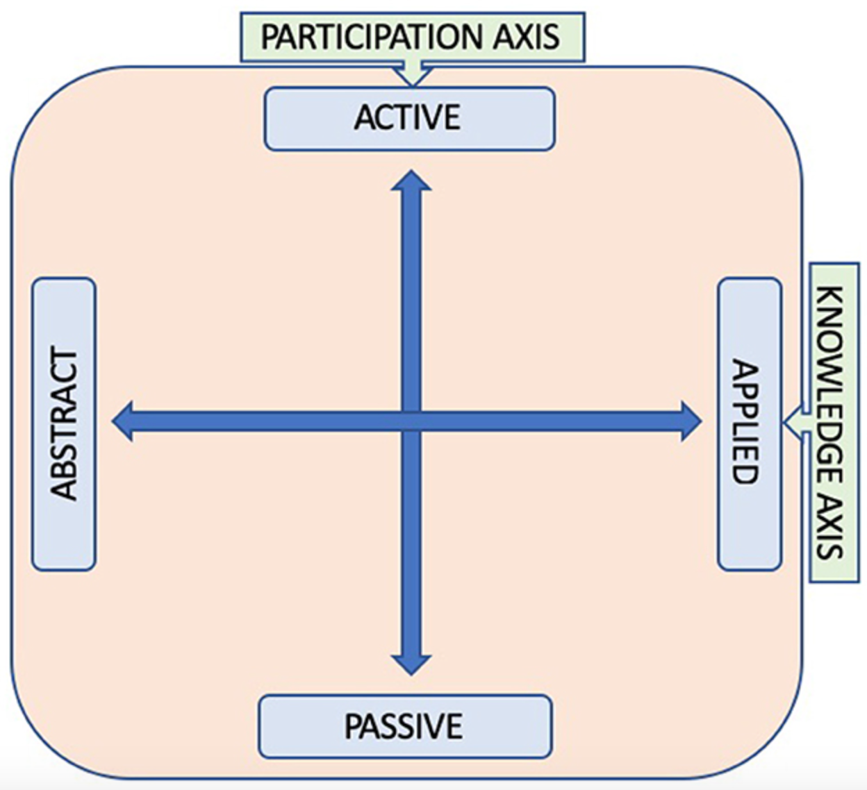Looking across all the case studies we began to build a model – referred in the article as a ‘schematic’ (Fig. 1) – of our research approach. The model was built around two key dynamics underlying all research – knowledge production and participation – each conceived as a spectrum, from ‘active to passive’ participation and ‘abstract to applied’ knowledge.